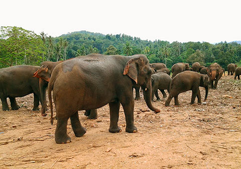 Pinnawala Elephant Orphanage is an orphanage, nursery and captive breeding ground for wild Asian elephants located at Pinnawala village, 13 km (8.1 mi) northeast of Kegalle town in Sabaragamuwa Province of Sri Lanka. Pinnawala has the largest herd of captive elephants in the world. In 2011, there were 88 elephants, including 39 males and 49 females from 3 generations, living in Pinnawala.